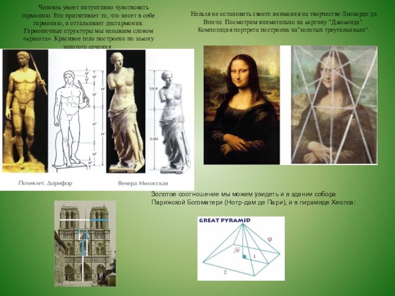 Золотое соотношение мы можем увидеть и в здании собора Парижской Богоматери (Нотр-дам де Пари), и в пирамиде Хеопса: