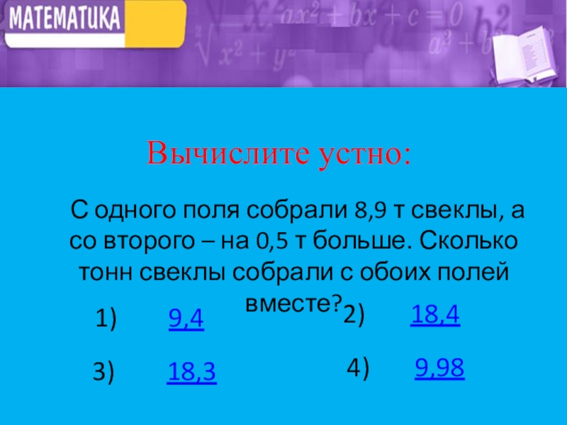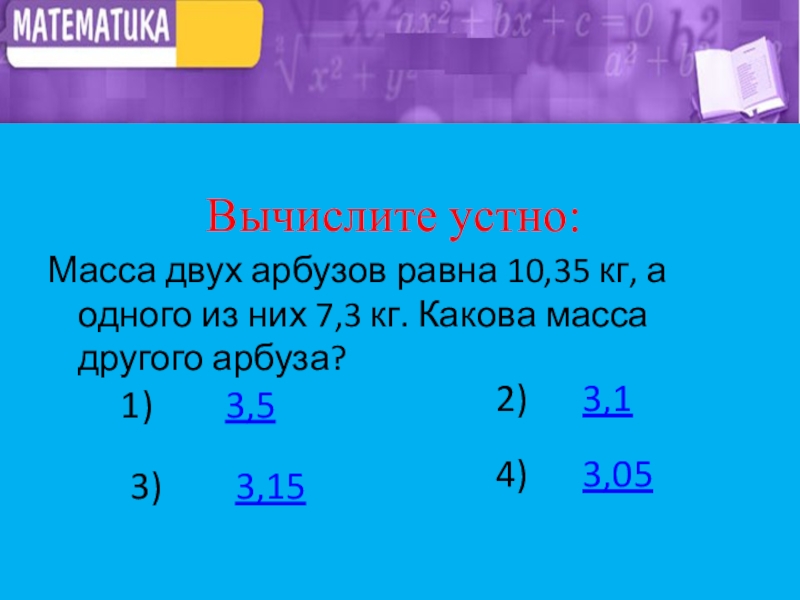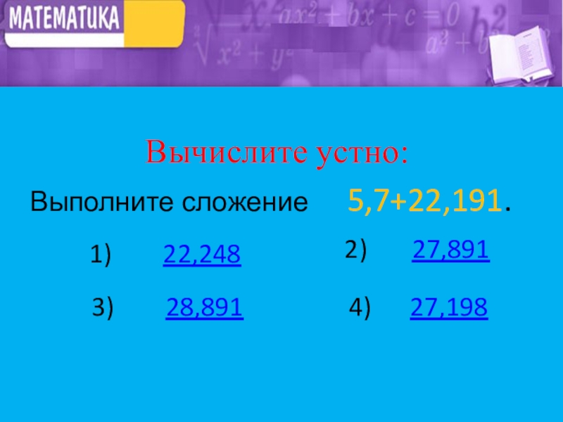 Вычислите устно: