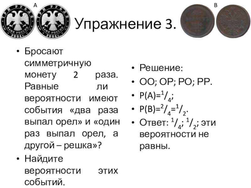 Ответ: 1/4; 1/2; эти вероятности не равны.