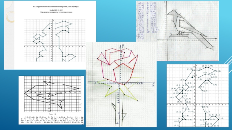 "красивых" заданиях на координатной плоскости. Они неизменно вызывают интерес у детей среднего школьного возраста, прежде всего, потому, что просты по форме и разнообразны по внешнему облику. На рисунках в координатах может быть изображен не только отдельный объект, но и целые сюжеты. Такие задания пробуждают фантазию учеников, заставляют воочию увидеть связь красоты и математики, непосредственно соприкоснуться с миром прекрасного прямо на уроке в процессе выполнения учебно-познавательного задания.