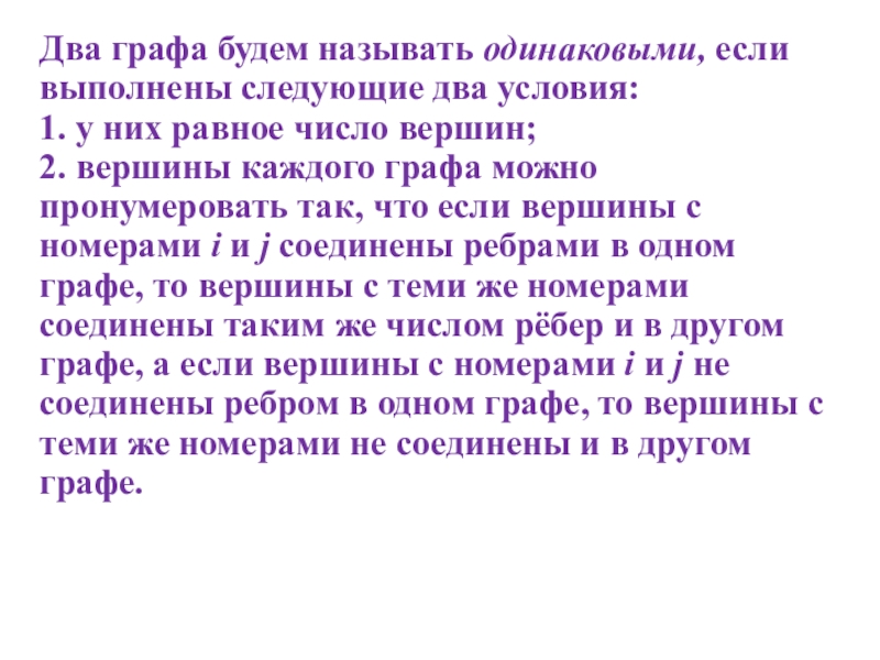 «Одинаковые графы. Эйлеровы графы»