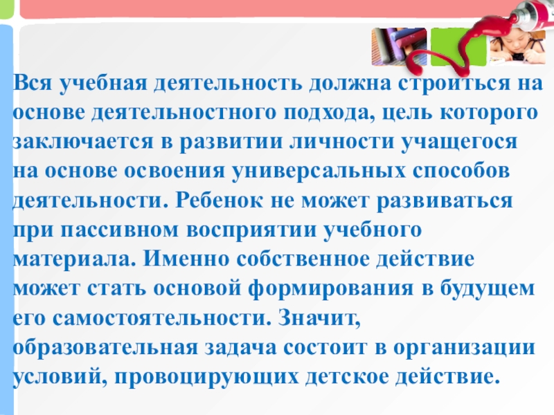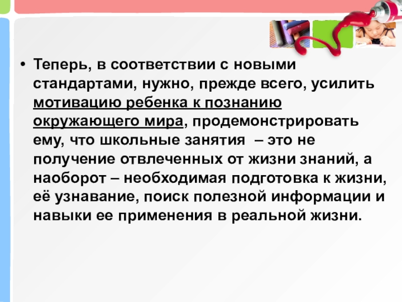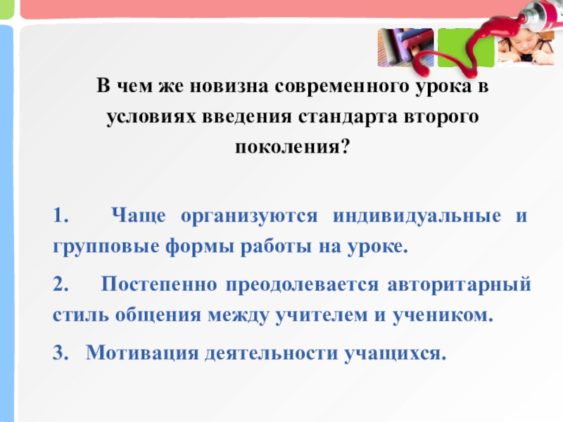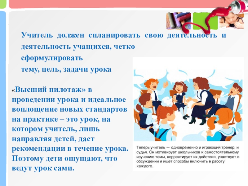 «Высший пилотаж» в проведении урока и идеальное воплощение новых стандартов на практике – это урок, на котором учитель, лишь направляя детей, дает рекомендации в течение урока. Поэтому дети ощущают, что ведут урок сами.
