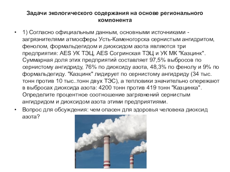 Задача с использованием регионального компонента: