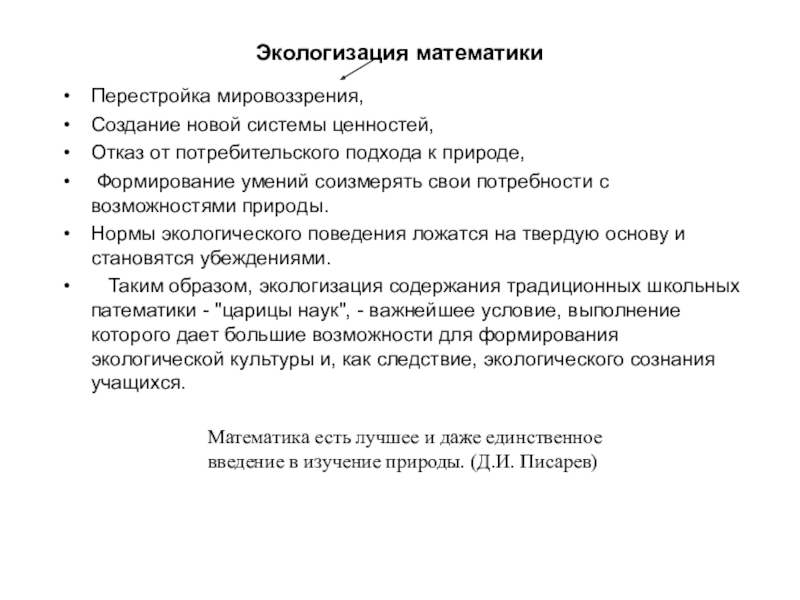 Математика есть лучшее и даже единственное введение в изучение природы. (Д.И. Писарев)