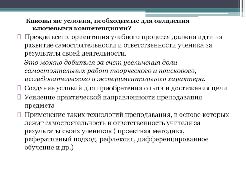 Каковы же условия, необходимые для овладения ключевыми компетенциями?