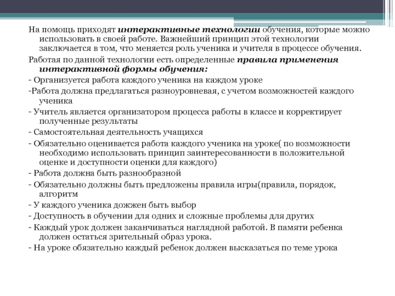Работая по данной технологии есть определенные правила применения интерактивной формы обучения: