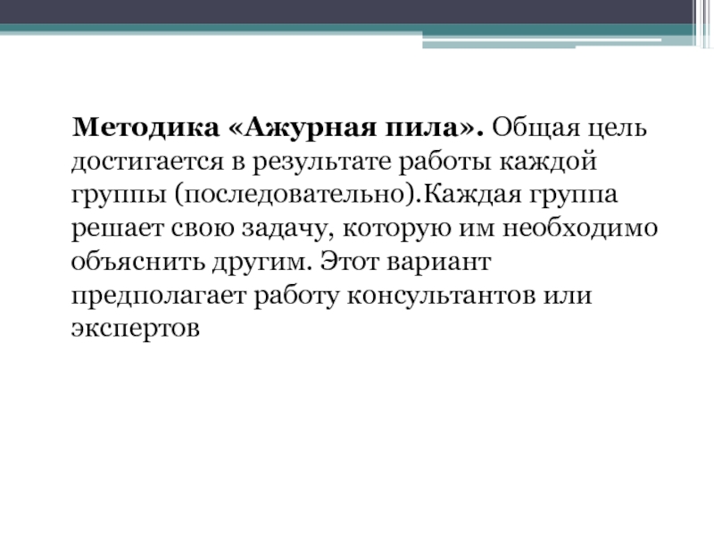 каждой группы (последовательно).Каждая группа решает свою задачу, которую им необходимо объяснить другим. Этот вариант предполагает работу консультантов или экспертов
