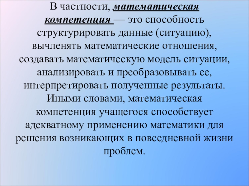 Слайд 16В частности, математическая компетенция — это способность структурировать данные (ситуацию), вычленять