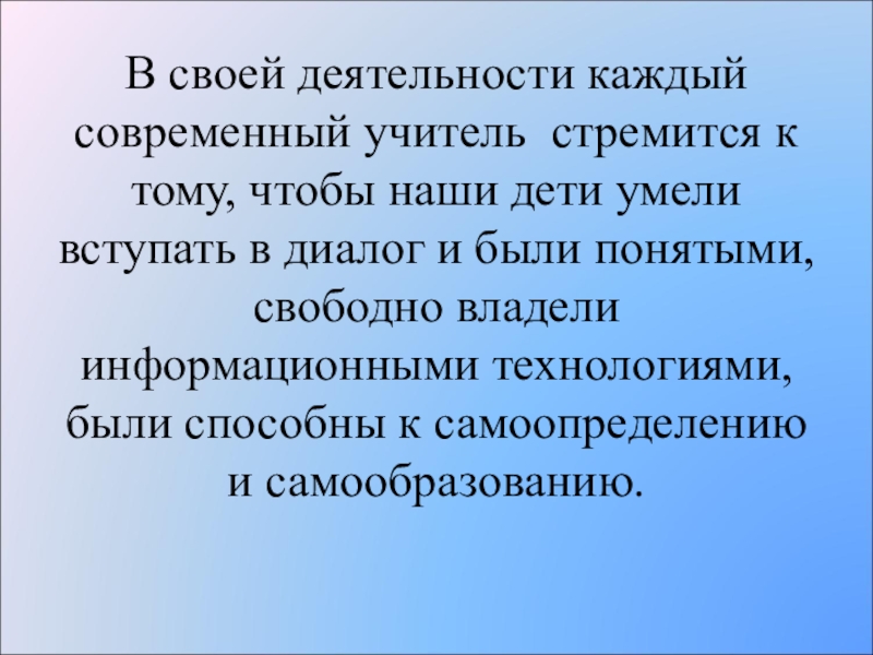Слайд 3В своей деятельности каждый современный учитель стремится к тому, чтобы наши