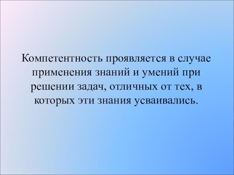 Слайд 18Компетентность проявляется в случае применения знаний и умений при решении задач,