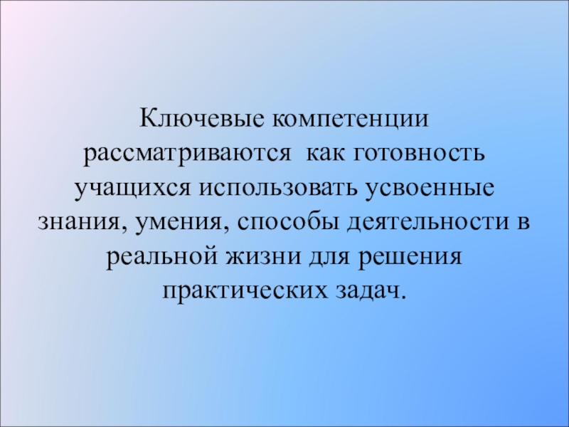 Слайд 4Ключевые компетенции рассматриваются как готовность учащихся использовать усвоенные знания, умения, способы