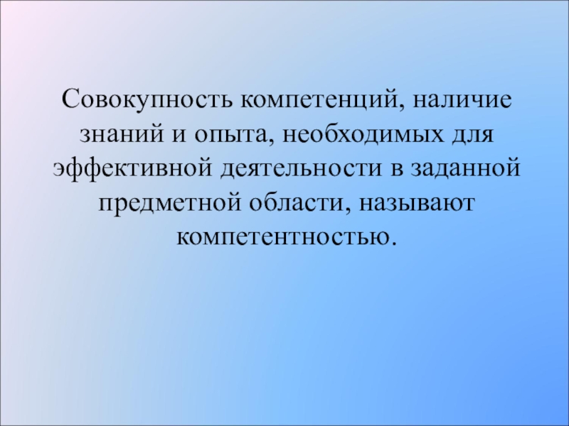 Слайд 17Совокупность компетенций, наличие знаний и опыта, необходимых для эффективной деятельности в