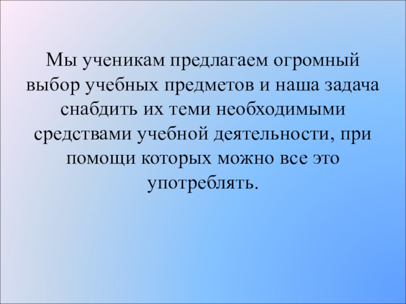 Слайд 14Мы ученикам предлагаем огромный выбор учебных предметов и наша задача снабдить