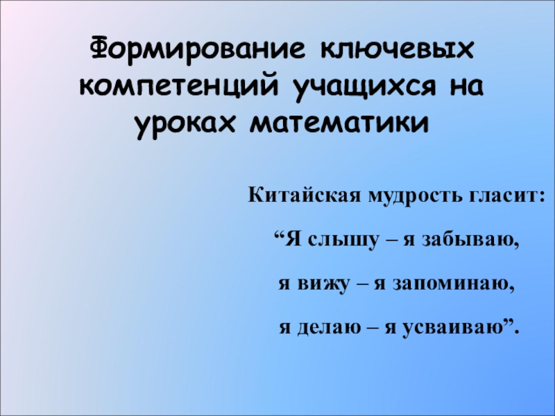 Слайд 1Формирование ключевых компетенций учащихся на уроках математики