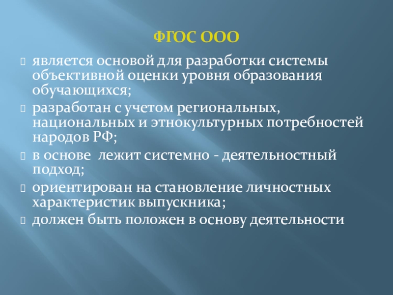 Слайд 7является основой для разработки системы объективной оценки уровня образования обучающихся;