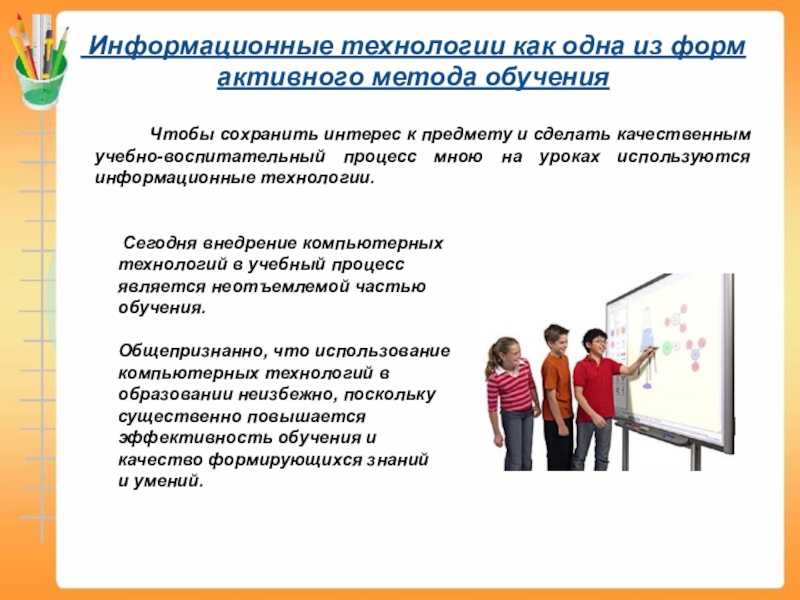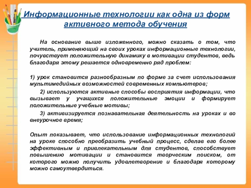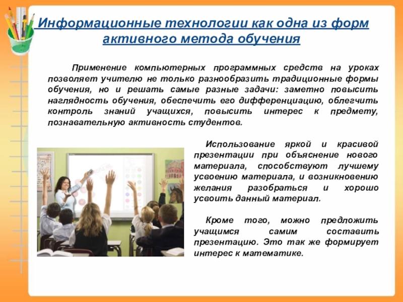 Как видим, учащиеся становятся очевидцами возникновения проблем, участниками их постановки и решения. Изучение темы проходит в форме решения интересных практических и познавательных задач. Существенное увеличение времени на подготовку к уроку оправдано возрастающим интересом учащихся к предмету.