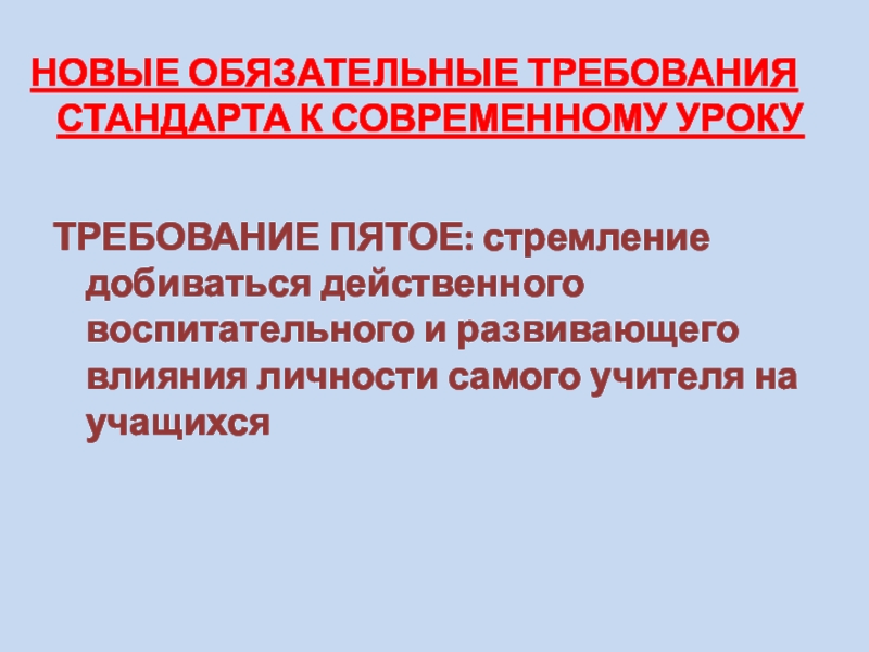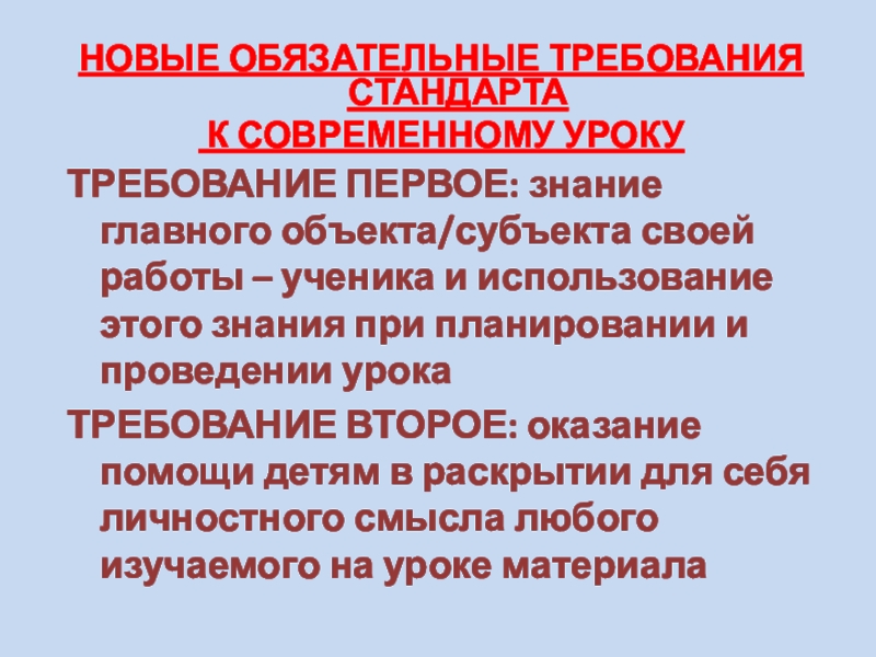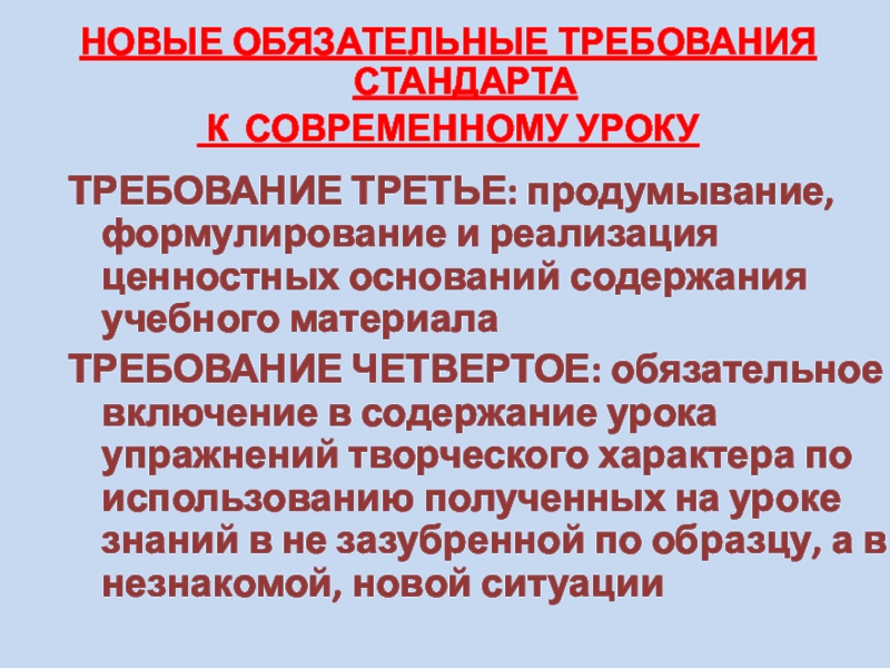 НОВЫЕ ОБЯЗАТЕЛЬНЫЕ ТРЕБОВАНИЯ СТАНДАРТА К СОВРЕМЕННОМУ УРОКУ