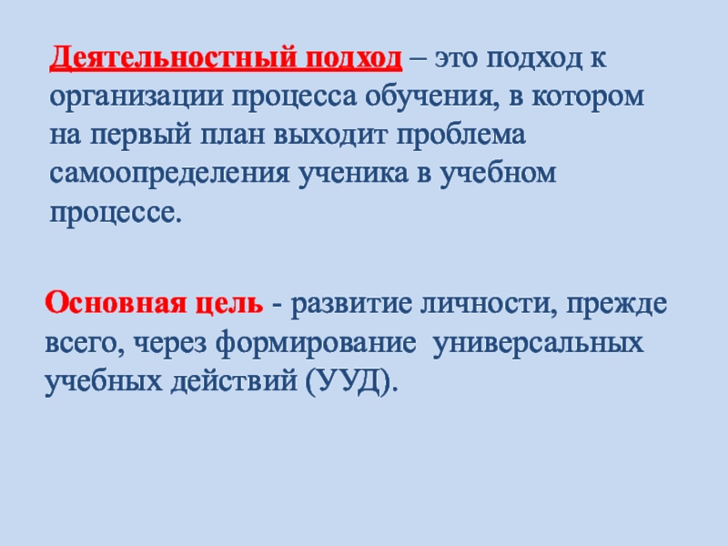 Основная цель - развитие личности, прежде всего, через формирование универсальных учебных действий (УУД).