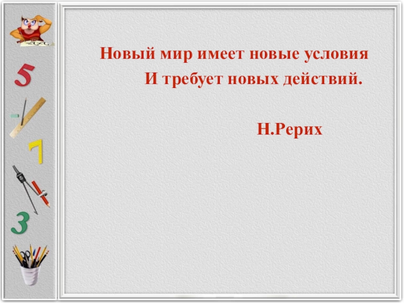 Слайд 2 Новый мир имеет новые условия