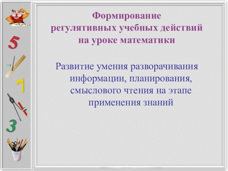 на развитие регулятивных УУД