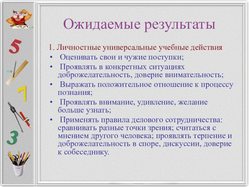 1. Личностные универсальные учебные действия