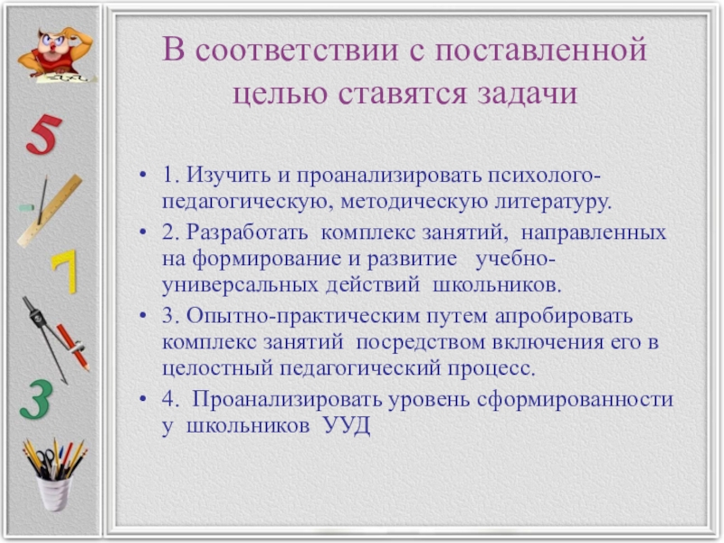 Слайд 7В соответствии с поставленной целью ставятся задачи