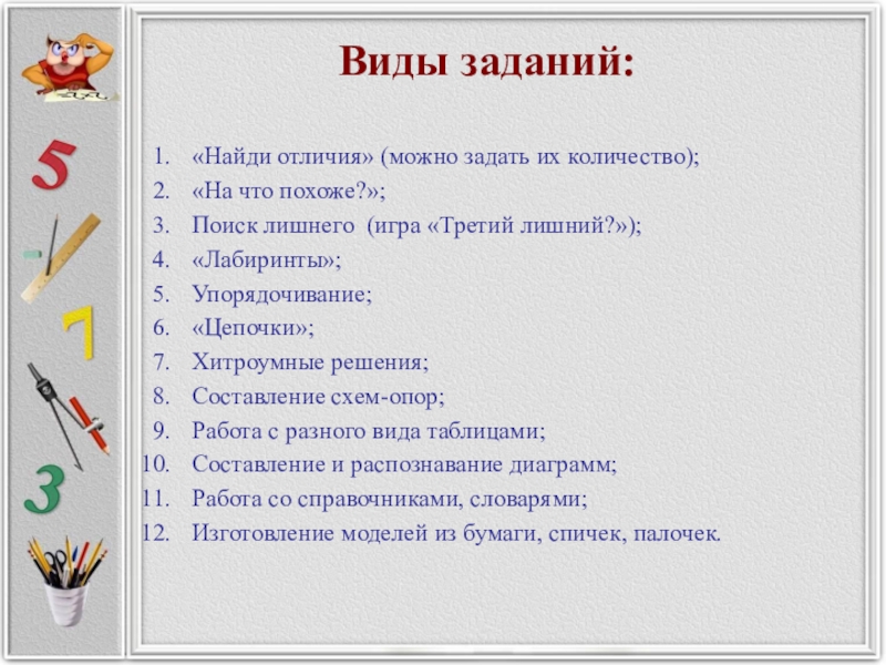 Слайд 17Виды заданий: