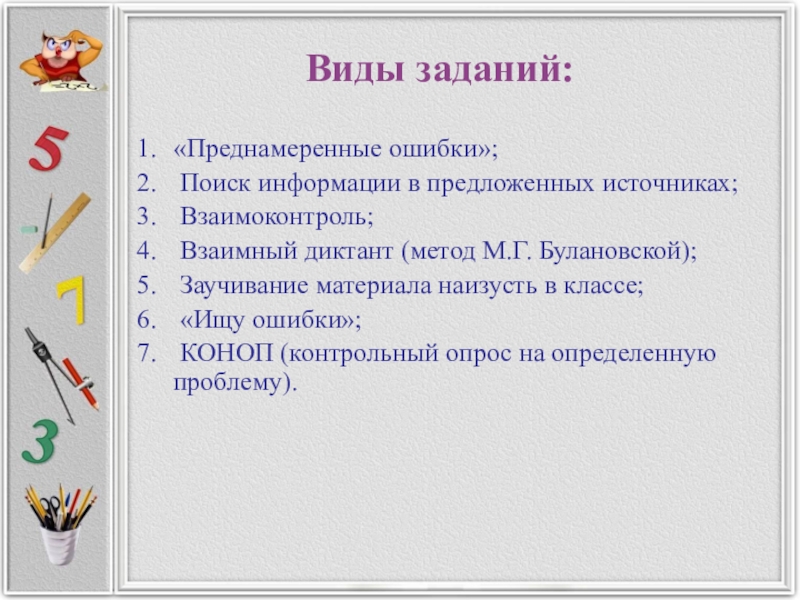 Слайд 16Виды заданий: