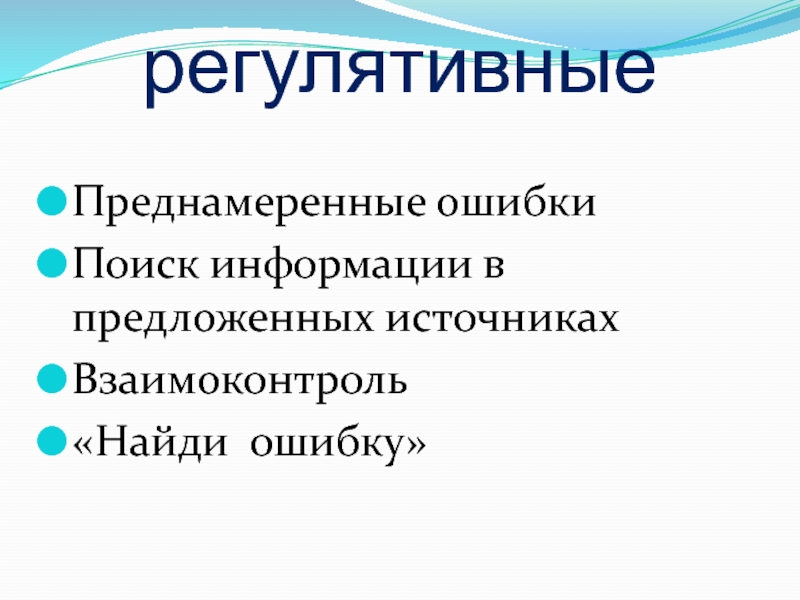 регулятивныеПреднамеренные ошибкиПоиск информации в предложенных источникахВзаимоконтроль«Найди ошибку»