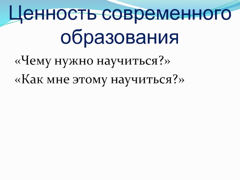 Ценность современного образования«Чему нужно научиться?»«Как мне этому научиться?»