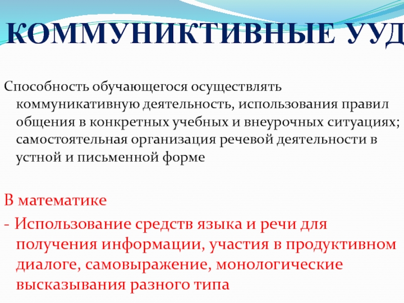 Слайд 8КОММУНИКТИВНЫЕ УУД