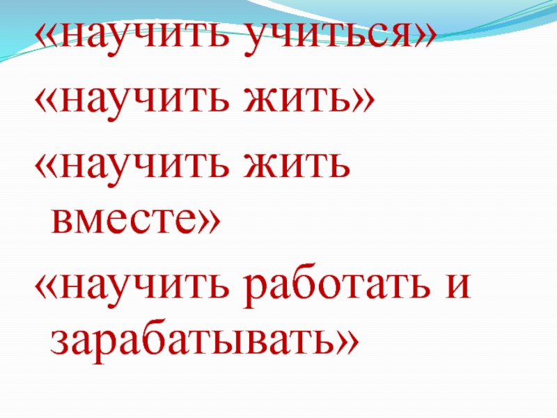 «научить учиться»«научить жить»«научить жить вместе»«научить работать и зарабатывать»