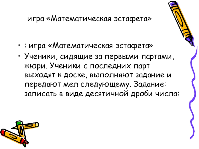 Слайд 9игра «Математическая эстафета»