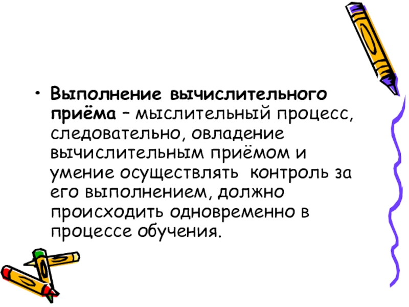 Слайд 5Выполнение вычислительного приёма – мыслительный процесс, следовательно, овладение вычислительным приёмом и