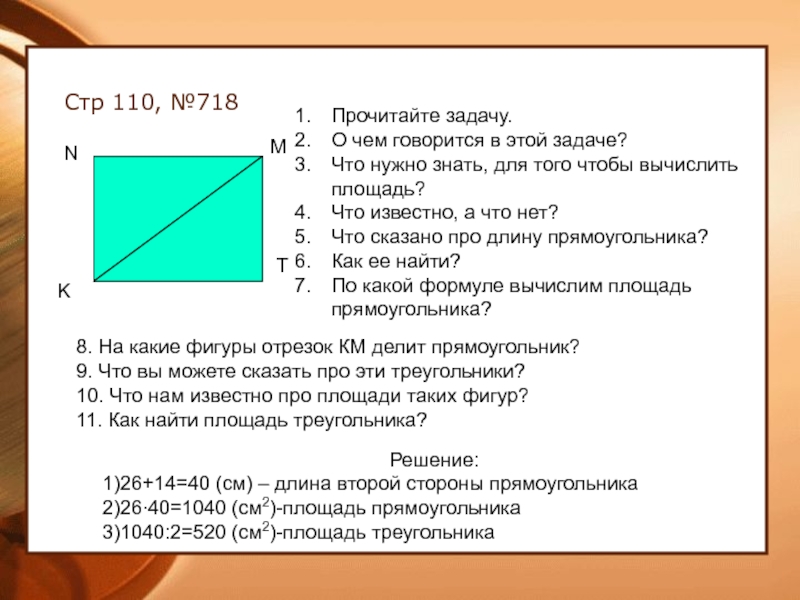 8. На какие фигуры отрезок КМ делит прямоугольник?