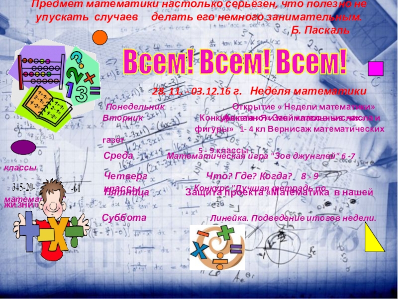 28. 11. - 03.12.16 г. Неделя математики