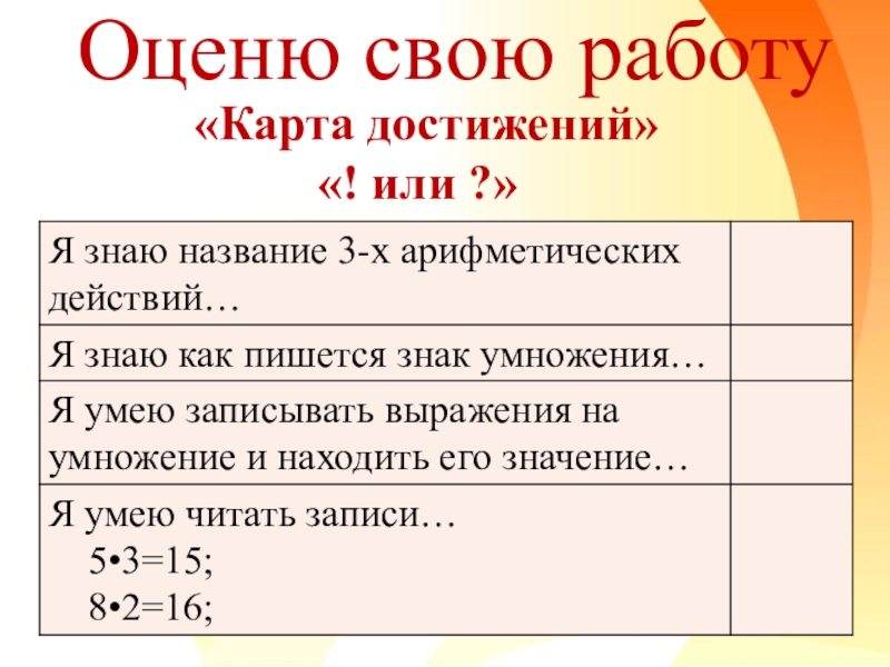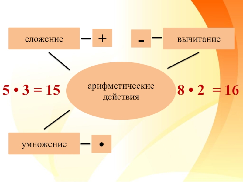 арифметические действиясложениеумножениевычитание+-•5 • 3 = 15  8 • 2 = 16