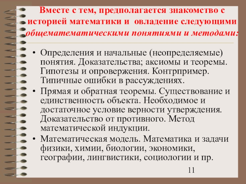 Определения и начальные (неопределяемые) понятия. Доказательства; аксиомы и теоремы. Гипотезы и опровержения. Контрпример. Типичные ошибки в рассуждениях.