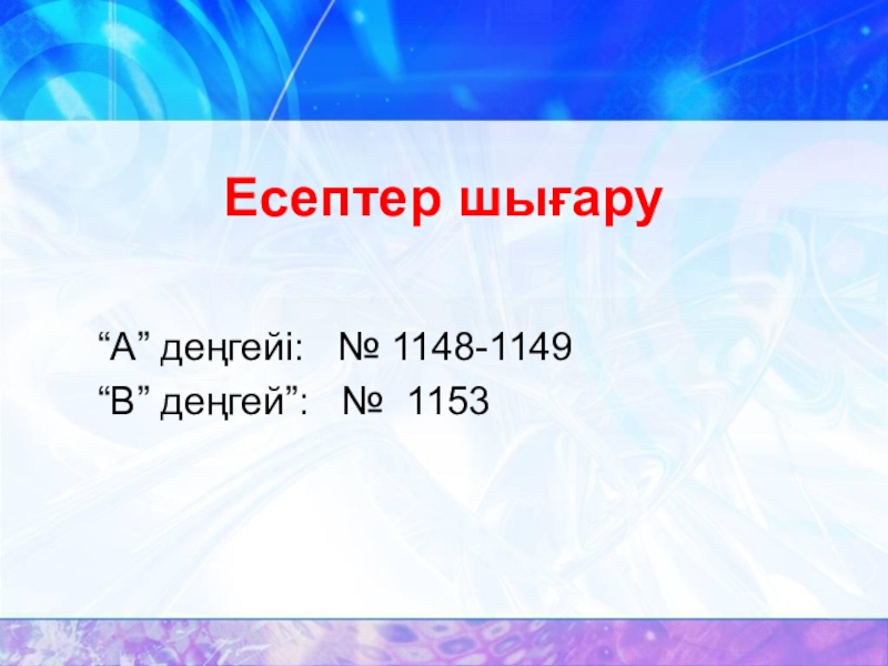 Есептер шығару“А” деңгейі:  № 1148-1149“В” деңгей”:  № 1153
