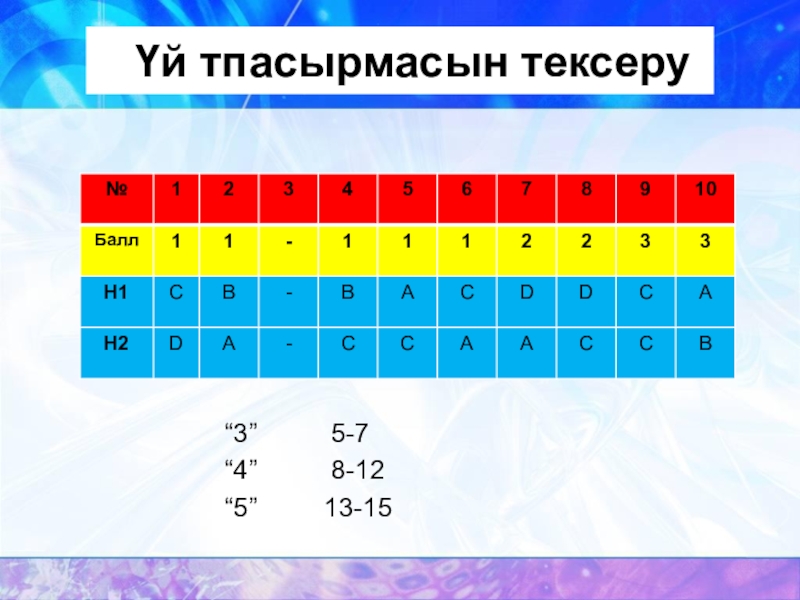 Үй тпасырмасын тексеру  “3” 5-7“4” 8-12 “5” 13-15