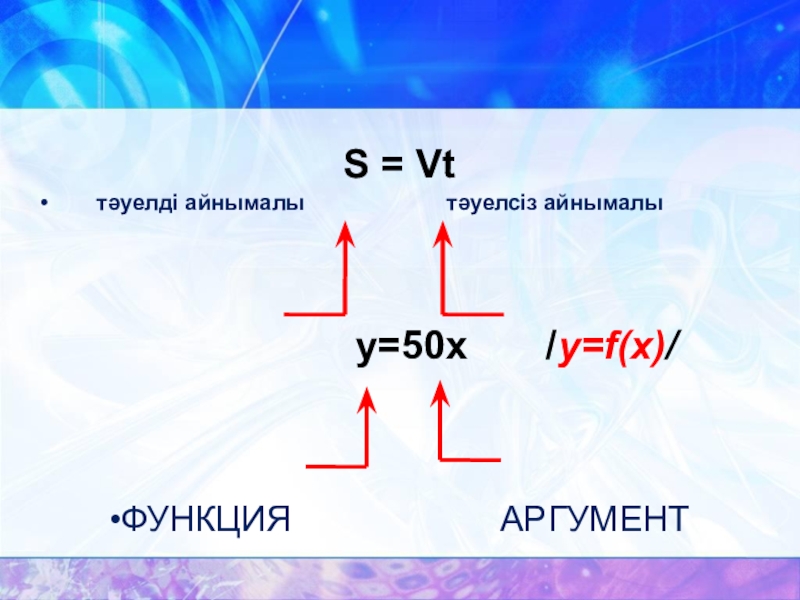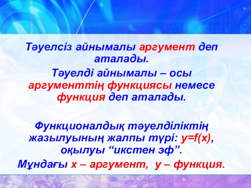 Слайд 8Тәуелсіз айнымалы аргумент деп аталады.