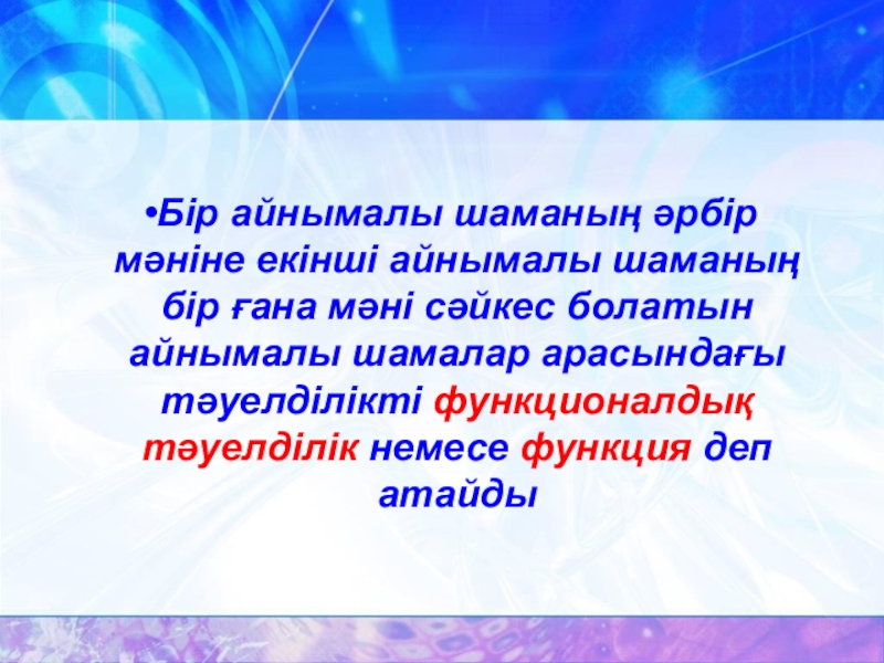 Слайд 6Бір айнымалы шаманың әрбір мәніне екінші айнымалы шаманың бір ғана мәні