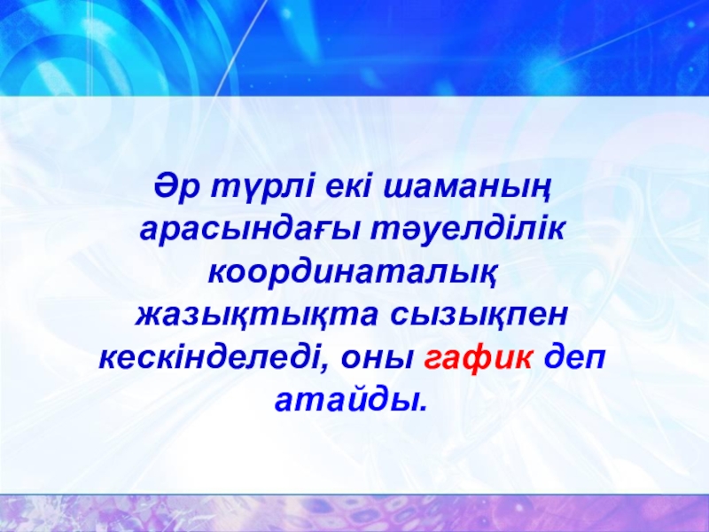 Слайд 3Әр түрлі екі шаманың арасындағы тәуелділік координаталық жазықтықта сызықпен кескінделеді, оны
