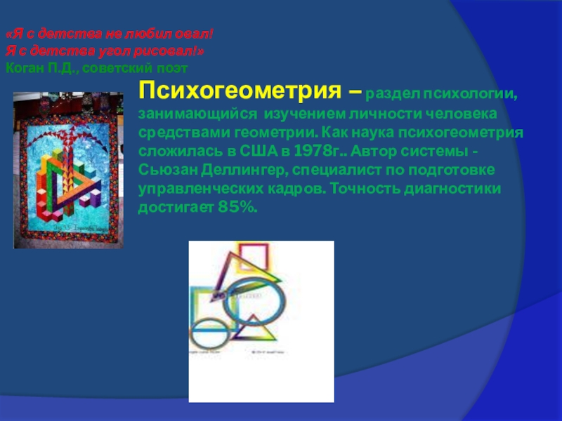 “открытие” новой функции геометрических фигур как языка для описания себя (своего характера), для лучшего понимания других людей – знакомство с психогеометрией;