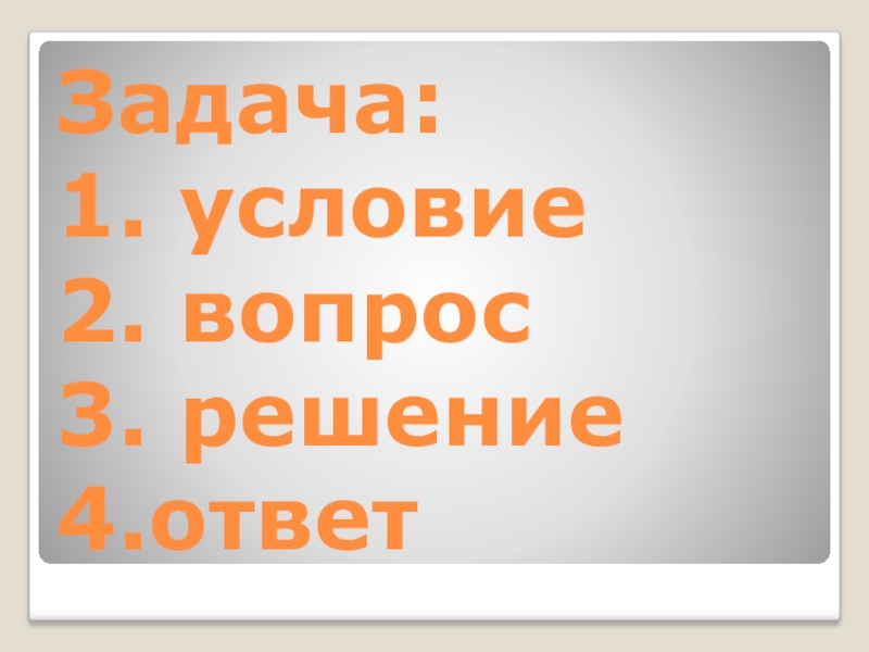 Задача:  1. условие 2. вопрос 3. решение 4.ответ