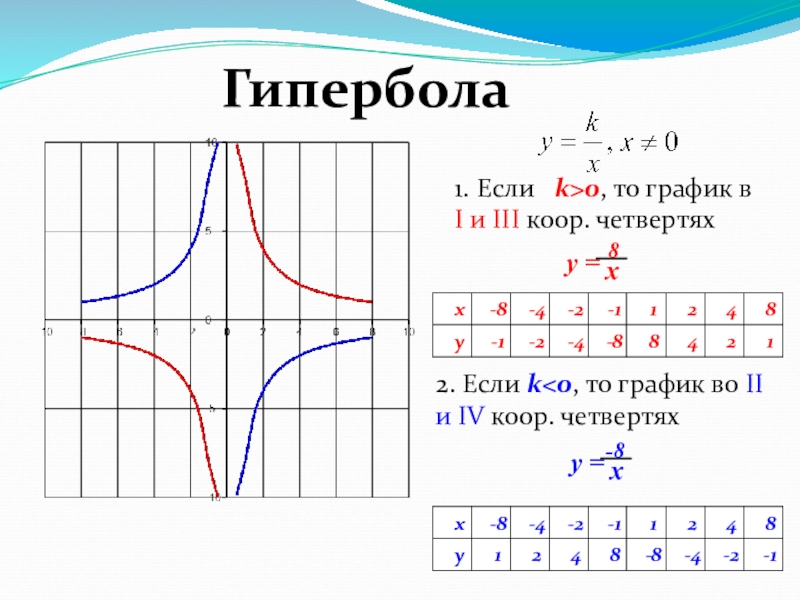 2. Если k<0, то график во II и IV коор. четвертях