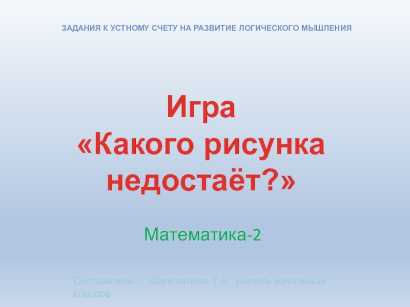 К УСТНОМУ СЧЕТУ НА РАЗВИТИЕ ЛОГИЧЕСКОГО МЫШЛЕНИЯ