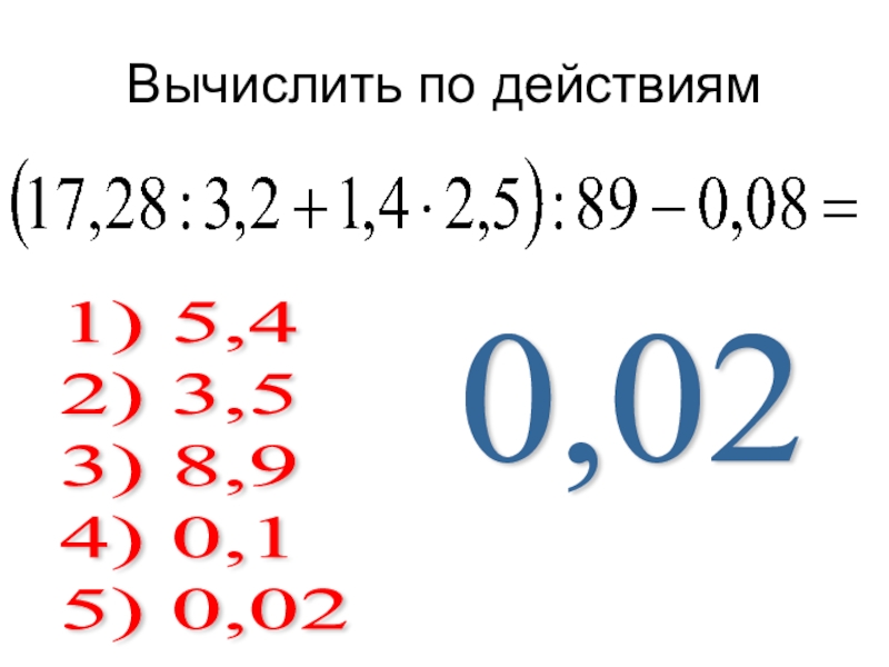 Вычислить по действиям1) 5,4  2) 3,5  3) 8,9  4) 0,1  5) 0,020,02