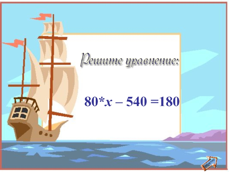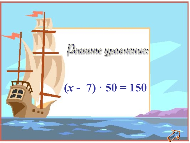 Презентация, доклад на тему Игра Морской бой по теме Умножение и деление натуральных чисел, уравнения