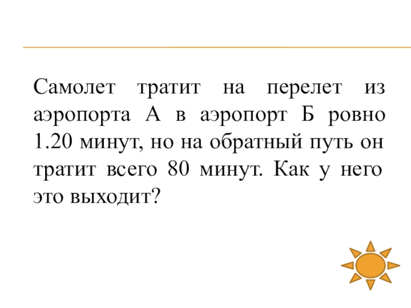 Слайд 11Самолет тратит на перелет из аэропорта А в аэропорт Б ровно